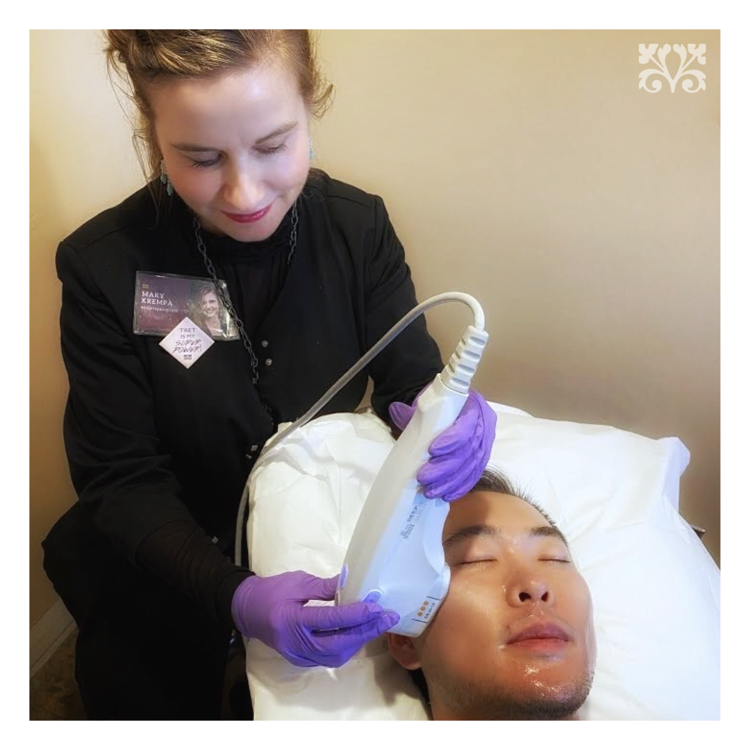 Ultherapy lifts, tightens, and tones loose skin on the face, neck, and under the chin to counteract the effects of time and gravity. Ultherapy works by gently heating the tissue to lift and tighten loose skin without cutting or disrupting the surface of the skin. Your skin’s response to the energy is to stimulate the growth of new collagen. A gradual tightening and firming occurs, resulting in a natural lift of the skin over time.